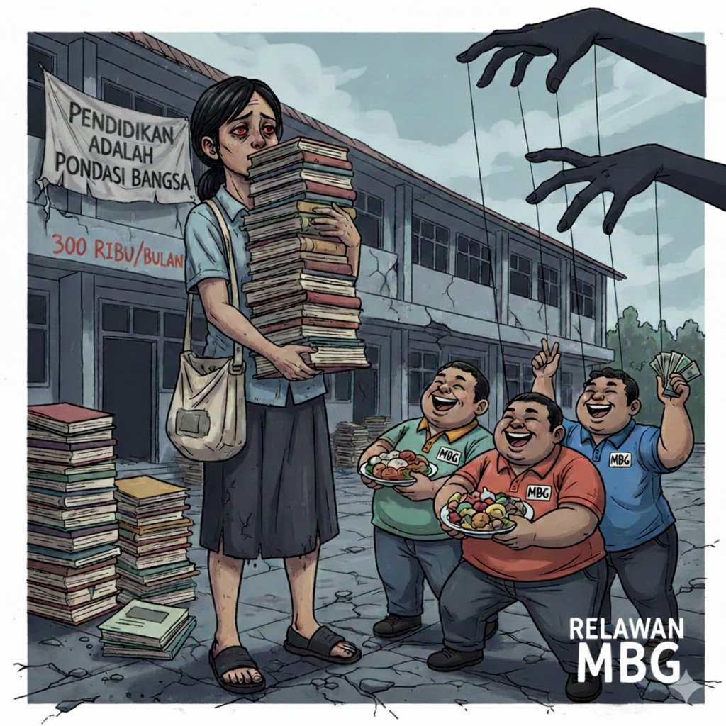 Menurut keyakinan saya, Indonesia memang sepertinya disusupi suatu agenda tersembunyi. Kita gak bisa terus-terusan naif pura-pura gak tau. Coba kita merenung sebentar, sebentar saja. Kita semua tau, siapapun dari kalangan manapun, bahwa "Pendidikan adalah pondasi suatu bangsa", artinya pendidikan memiliki peranan begitu penting. Ada agenda yang sengaja men-set agar bangsa Indonesia selalu bodoh. Bagaimana jalannya? Ada banyak yang bisa kita lihat dengan jelas dan sangat kasat mata. 1. Guru dibuat agar selalu tertindas Mungkin kita pernah melihat atau setidaknya mendengar "katanya" gaji guru itu 300 ribu/bulan dan dibayar bisa terlambat 1-2 bulan. Fakta pahitnya, itu bukan "katanya" tapi "faktanya". Yes, itu fakta yang bukan hiperbola. Gila lu, 300 ribu/bulan bahkan gak jarang dibayar per 3 bulan. Ini bukan bercanda. Mereka itu bekerja bukan main-main. Mereka ada absen masuk dan absen pulang, ada minimal waktu bekerja, tidak semaunya masuk dan pulang (ada aturan yang harus dipatuhi). Bahkan gak jarang kerjaan sampai dibawa ke rumah. Bukan karena kerjaan mereka lambat, tapi karena kerjaan yang overload sehingga secara gak langsung memaksa unpaid overtime. Tugas anak-anak murid yang dikerjakan di buku harus diperiksa satu per satu. Kita hitung kasar: 1 kelas 35 siswa dikali 1 tingkat 8 kelas = 280 anak. Artinya ada 280 buku yang harus dikoreksi satu per satu. Bandingkan dengan kerjaan buruh yang 8 jam kerja selesai, pulang, beres, tidak ada kerjaan di luar jam. Gaji? UMR minimal. Overtime? Dibayar. Gaji tahun depan cuma naik sedikit? Demo besar-besaran. Lihat guru! Tiap tahun segitu-segitu aja. Bro!!! Ini gila, bukan bercanda. 2. Makan Bergizi Gratis (MBG) Awal tahun 2025 ada program namanya Makan Bergizi Gratis (MBG). Kita harus buka mata, siapa yang mengurus kegiatan di sana? Orang-orang yang dibayar 2-5 juta/bulan. Kalau kita hitung harian, berkisar 100-200 ribu/hari. Artinya, gaji guru 1 bulan setara dengan 2-3 hari kerja orang di MBG. Oh, gak berhenti di situ. Mereka bukan pekerja, mereka RELAWAN. Waw banget kan? Kalau yang dibayar 2-5 juta/bulan dikatakan relawan, apa kabar guru? Budak kah? Cukup di sana? Belum! Guru wajib Sarjana, sedangkan relawan MBG tidak mesti. *ketawamiris. No offense sama relawan (pekerja) MBG, tapi kita lihat dari sisi lain. Ini hanya mempertegas bahwa pemerintah sebetulnya bukan gak punya duit, tapi memang kembali lagi ke poin di atas: bahwa sektor pendidikan sengaja di-set agar hancur. Alih-alih uang yang sebegitu besar disalurkan ke yang urgent, malah lari ke sana. Di akhir kalimat, saya mau mengatakan: kita seharusnya mulai membuka mata dan sadar bahwa ini adalah kejahatan. Jangan terus "maklum", apalagi mengatakan, "Ya siapa yang nyuruh lu jadi guru, udah tau gajinya kecil." Itu kalimat yang sangat jahat terhadap seseorang yang peduli terhadap bangsanya. Kalau semua punya prinsip seperti itu, minggu depan negara langsung bubar.